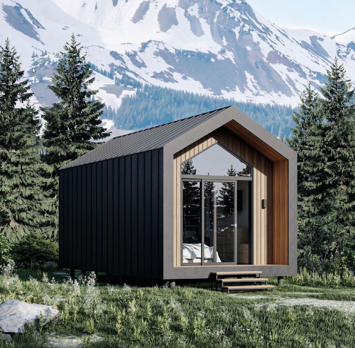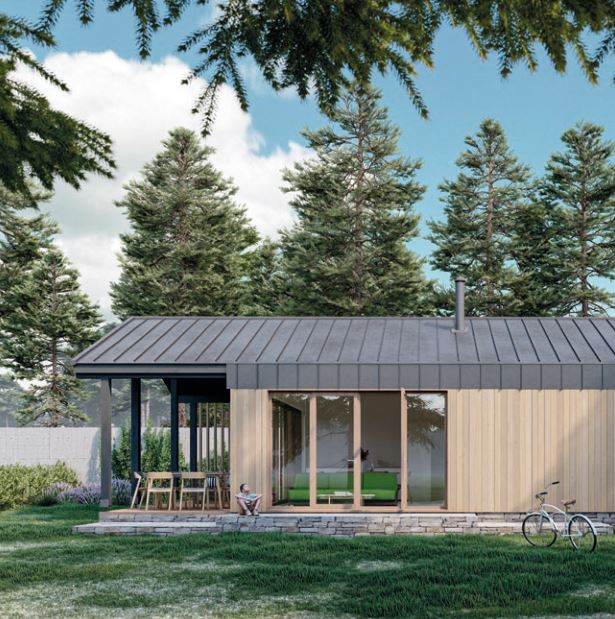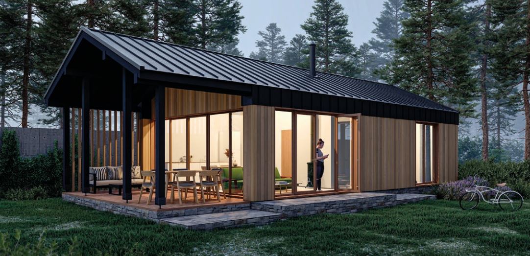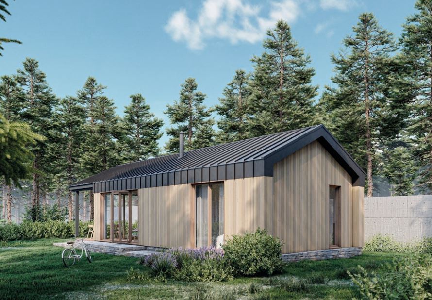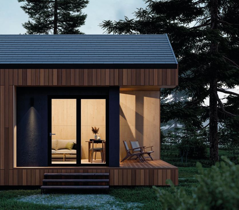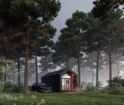 i prysznicem, posiada saunę o powierzchni 5,2 m². Wygląd zewnętrzny jest tak minimalistyczny, jak to tylko możliwe. W końcu dom ten został zaprojektowany jako moduł uniwersalny. Niezależnie od tego, czy jest to samodzielny dom, który można umieścić w dowolnym miejscu, czy też ma być dodatkiem w postaci zabudowy pensjonatowej na istniejącej posesji, czy też jako dodatek do istniejącej już nieruchomości, wszędzie wpisze się doskonale. Dom modułowy może być wyposażony w klimatyzację, panele ceramiczne/panele grzewcze, piec elektryczny z efektem sauny fińskiej.